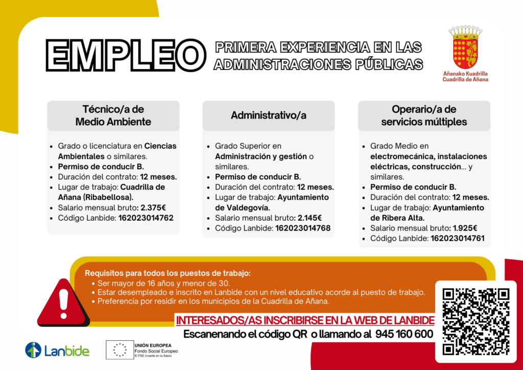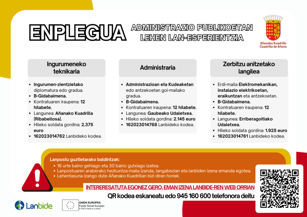 Plan de empleo «Primera experiencia en la administración pública» de la Cuadrilla de Añana.