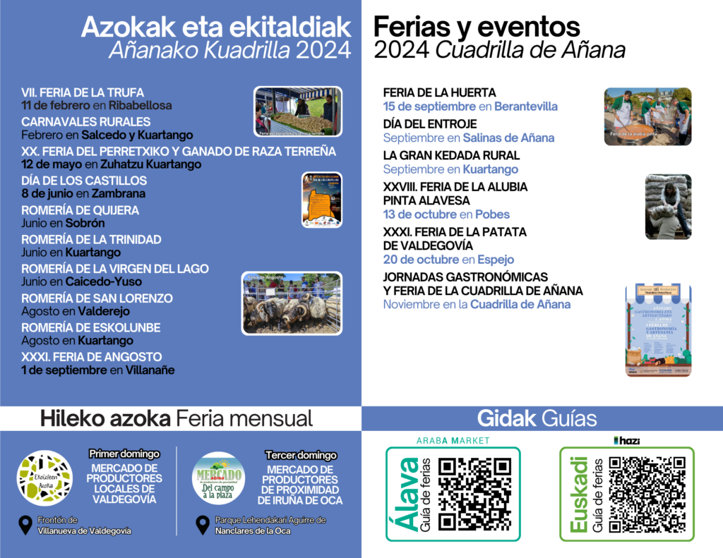 Calendario 2024 de ferias y eventos en los pueblos de la Cuadrilla de Añana